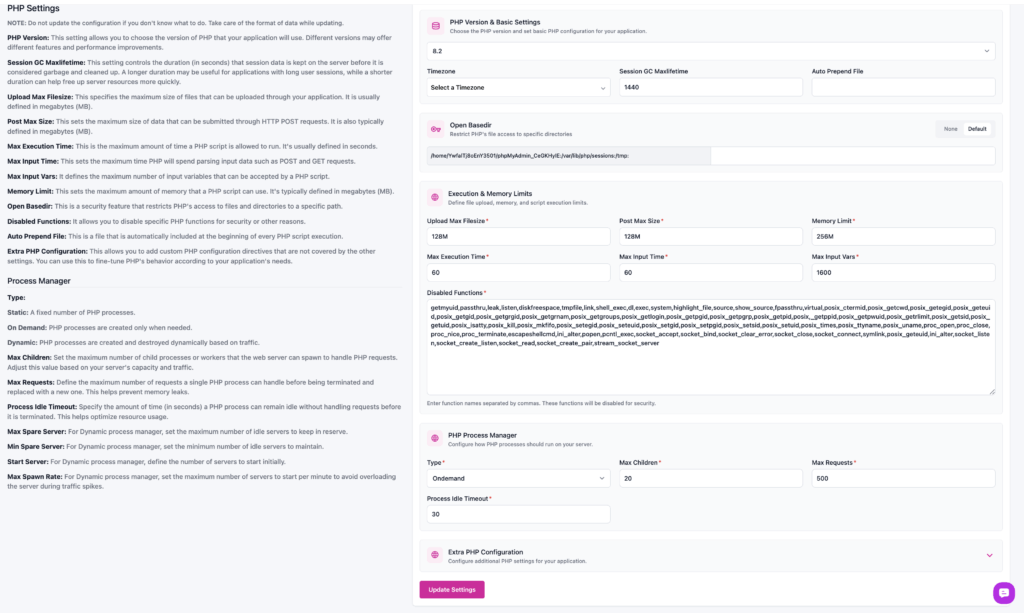 PHP Settings